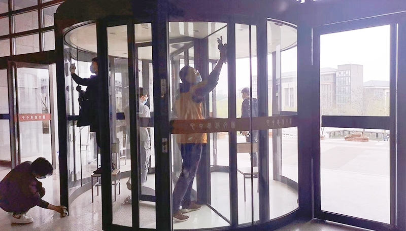 pp电子官方网站入口的责任区在杏园公寓丁座一层,各班级同学们组成“攻坚小组”,对责任区的门窗、楼梯扶手、地面和直饮水机等进行了彻底的卫生清洁消毒、通风换气、垃圾清理等工作。各宿舍同学们认真细致清洁宿舍窗户、阳台与地面。