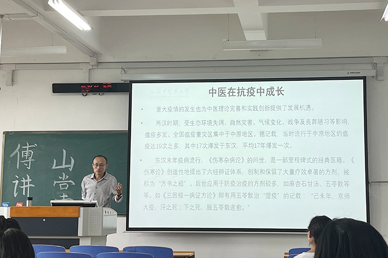 张维骏从人类历史上的瘟疫天花、黑死病、西班牙流感等疫病一一讲述,带同学们进一步了解了传染病及其防控,并通过一则则案例展现了从古至今中医在抗疫中的重要作用。他还通过五运六气学说分析和应对瘟疫的实例与同学们一起探讨。