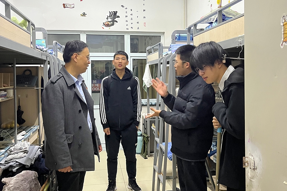 走访中,李培硕对学生宿舍生活设施、卫生和安全隐患等情况进行了察看,并与同学们进行了亲切、深入的交流,面对面了解同学们的思想、生活、学习等情况,一一给予关切的问候。在教室,与22级学生进行了交谈,询问了他们的学习情况,给予了学习上的建议。