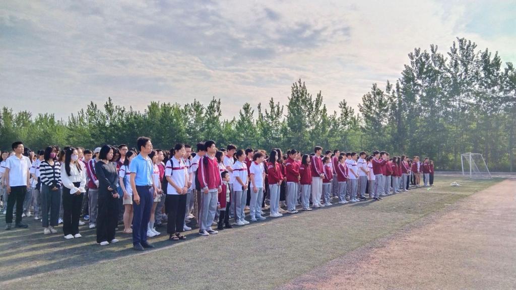 体育场上,参加升国旗仪式的全体师生整齐列队,庄严以待。护旗手们英姿飒爽,步伐整齐,护送着国旗走向升旗台。他们身穿制服,手持国旗,目光坚定,神情庄重,踏着朝阳,用青春的朝气守护鲜红的国旗。随着慷慨激昂、铿锵有力的《义勇军进行曲》奏响,五星红旗冉冉升起,高高飘扬在操场上空。全院师生齐聚在鲜艳的国旗下,向国旗行注目礼。学生代表孙烺宸发表以“不负青春年华,勇担职责使命”为主题的演讲,他勉励同学们作为国家新生力量,要勤读立耕,以前辈为楷模,有爱心有梦想,敢追梦敢圆梦!