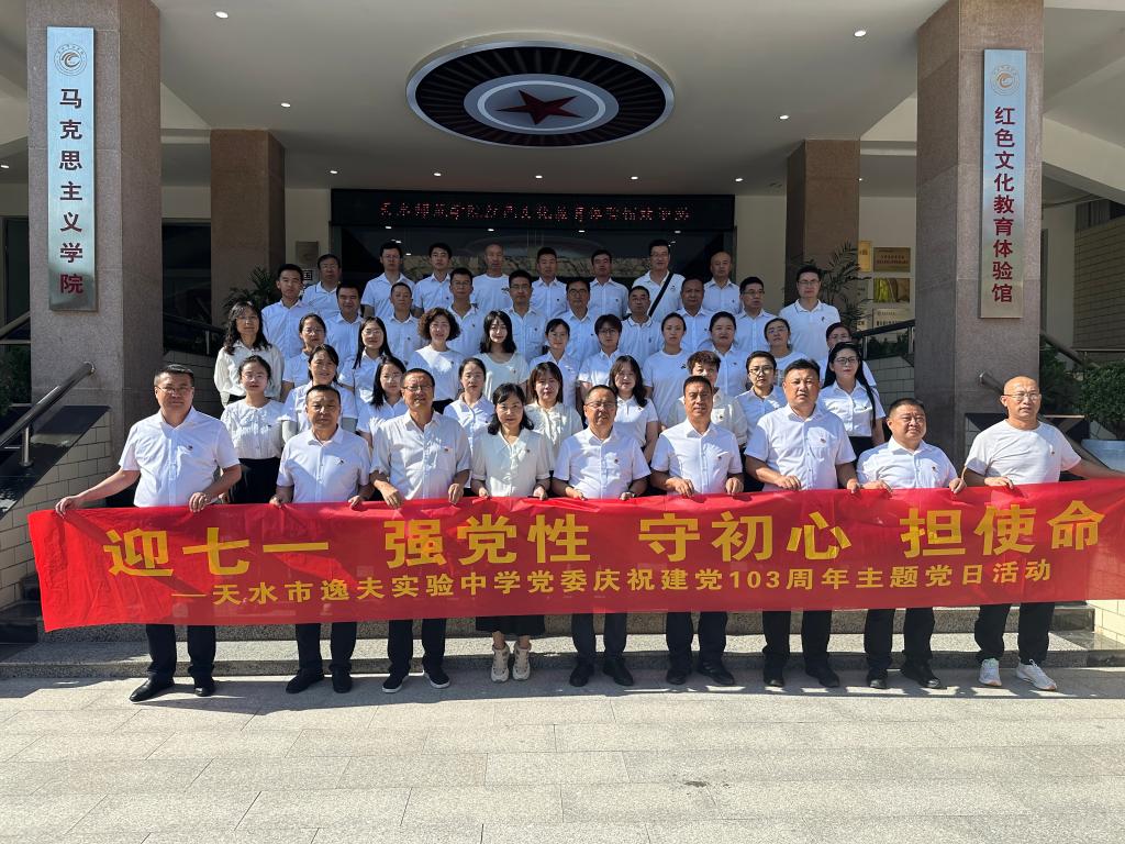 6月28日,天水市逸夫实验中学党委书记白永强带领全校党员教师在新葡萄8883官网AMG官网红色文化教育体验馆,与甘肃省思想政治理论课余明远名师工作室共同开展“迎七一 强党性 守初心 担使命——庆祝建党103周年主题党日活动”。