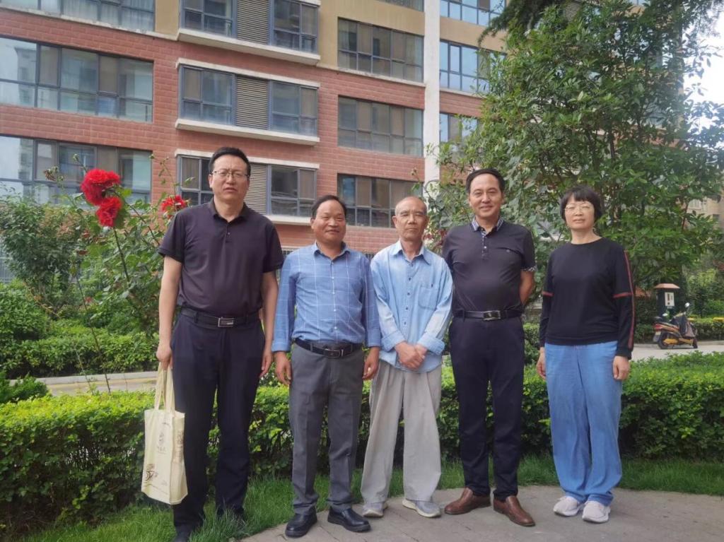 (郎志文校友看望老师。从左到右依次为:余明远、郎志文、高学文、吴卫东、杨晓敏)