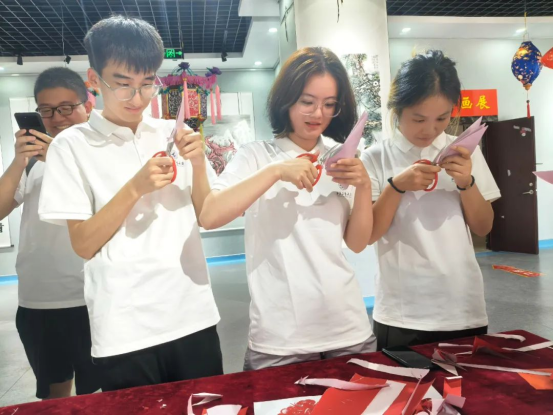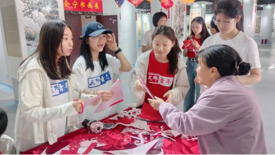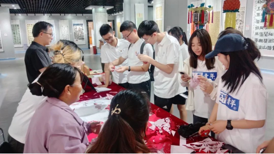 会宁是一片浸润着红色基因的土地,而文化馆正是串联起红色记忆与传统文化的重要纽带。同学们步入非物质文化遗产展厅,在讲解员的带领下,一边回溯会宁作为红军长征胜利会师地的峥嵘岁月,一边探寻非遗技艺中蕴含的红色密码。国家级非遗会宁剪纸里,既有对农耕生活的描绘,更有以长征故事为题材的经典作品,剪刀游走间,红色历史被定格成永恒的艺术;省级非遗会宁皮影戏《大墩梁》片段,更是以激昂的唱腔、铿锵的鼓点,将那段波澜壮阔、用生命守护阵地的历史鲜活呈现。在光影流转中诉说着不屈的斗争精神。红色精神与非遗技艺在此碰撞,让大学生们深刻体会到:传统文化不仅是民族的根脉,更是红色精神的鲜活载体。