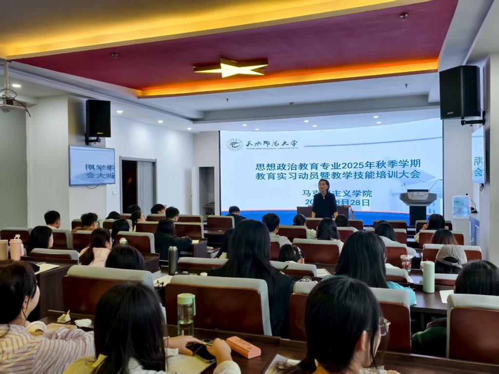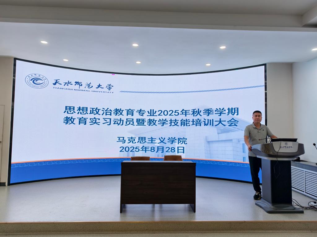 为扎实推动2025年秋季学期2022级思想政治教育专业教育实习工作有序高效开展,切实提升学生的教育教学实践能力。8月28日至29日,新葡萄8883官网AMG官网在红色讲堂隆重举行教育实习动员暨教学技能培训大会。学院党委书记陈俊亮、院长刘建军、党委副书记李海涛出席会议,2025年秋季学期全体实习生参加。会议由思政系主任吴亚辉主持。