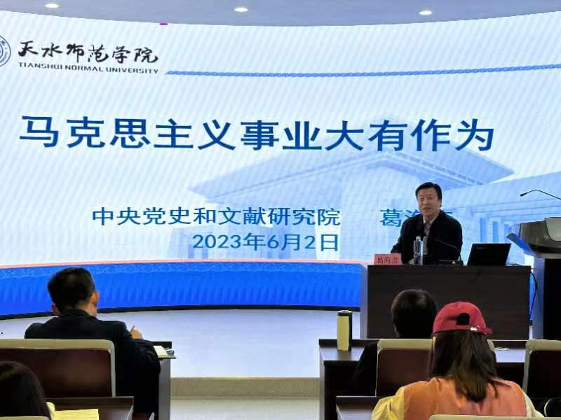 为扎实推进学院“三抓三促”和主题教育工作,开展好“学术活动月”活动。6月2日下午,学院邀请中共中央党史和文献研究院葛海彦研究员来院作学术报告。报告在红色文化教育体验馆红色讲堂举行,由学院党委书记刘建军主持,学院思政课教师、研究生和本科生共计80余人参加。