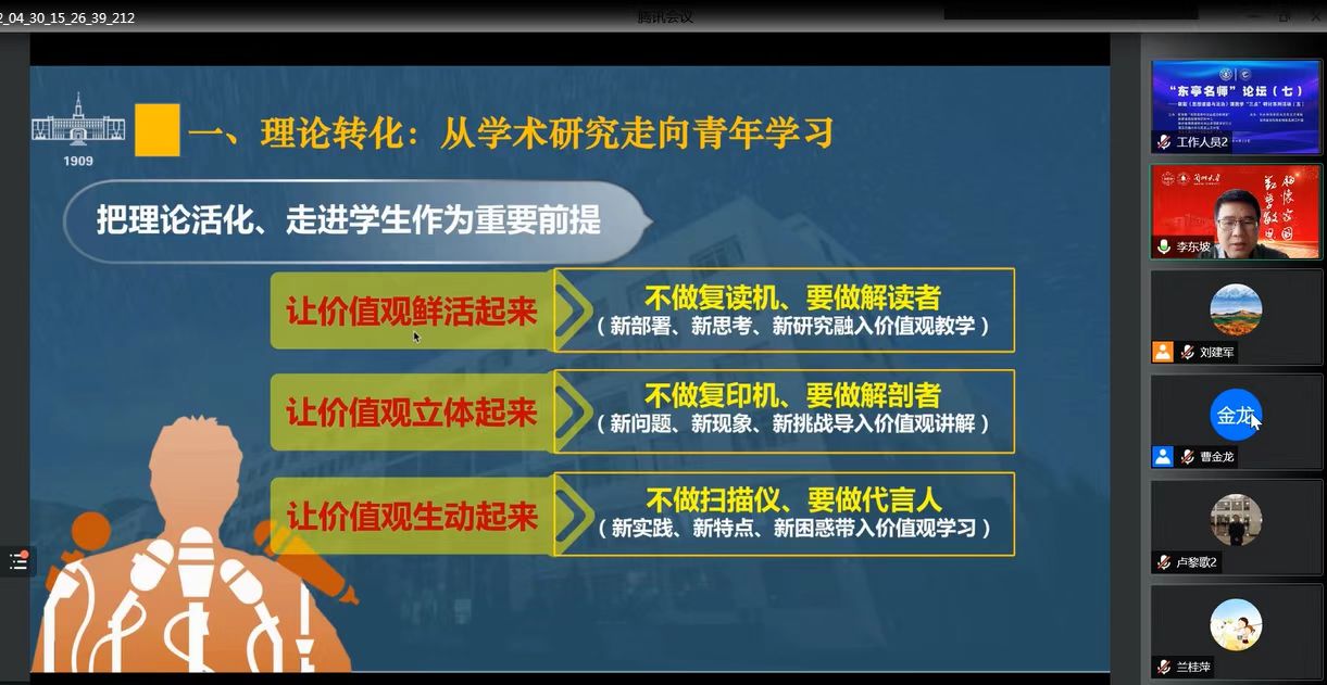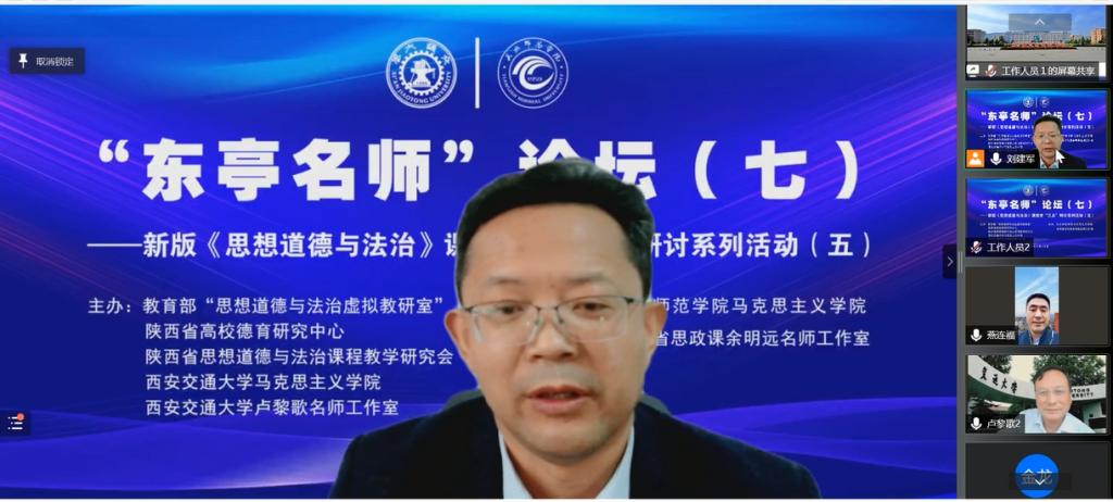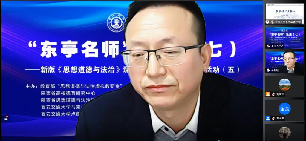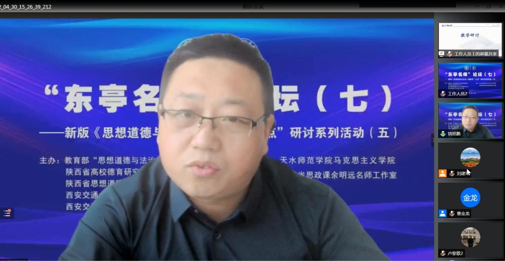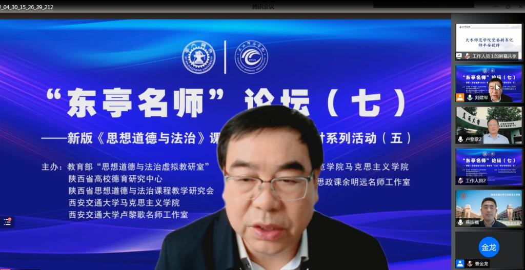 为学习贯彻习近平总书记在学校思政课教师座谈会上和近期考察中国人民大学时的重要讲话精神,进一步提升思政课教师教学水平与研究能力,4月30日,“名家领航 协同共进——《思想道德与法治》教学‘三点’研讨系列活动”第五次会议在新葡萄8883官网AMG官网举办。本次活动由教育部“思想道德与法治虚拟教研室”、陕西省高校德育研究中心、陕西省思想道德与法治课程教学研究会、西安交通大学新葡萄8883官网AMG官网、西安交通大学卢黎歌名师工作室与我校新葡萄8883官网AMG官网、甘肃省思政课余明远名师工作室联合举办,通过网络研讨会议方式进行。新葡萄8883官网AMG官网党委副书记师平安出席会议并致开幕辞,西安交通大学卢黎歌教授,兰州大学王学俭教授,上海交通大学新葡萄8883官网AMG官网院长邢云文教授,西安交通大学新葡萄8883官网AMG官网院长燕连福教授、思想政治教育研究所所长杨华副教授,我校新葡萄8883官网AMG官网全体教师及省内外高校专家学者、大中小思政课教师共计1275人参加本次会议。