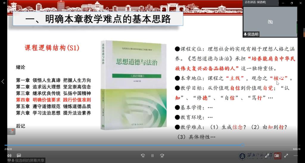 我校新葡萄8883官网AMG官网院长刘建军主持重点难点新点讲解环节,特邀哲学社会科学领军人才、中宣部“文化名家”暨“四个一批”理论人才、中央马克思主义理论研究与建设工程课题组成员、教育部高校思想政治理论课“形势与政策”和“当代世界经济与政治”分教指委副主任委员、上海交通大学新葡萄8883官网AMG官网院长邢云文教授结合新教材第四章编写围绕“重点、难点、新点”进行深入的解析与阐释,有针对性地答疑解惑,既体现政策性和学理性,又突出前沿性和生动性,为新版教材第四章教学提供了重要的指导。
