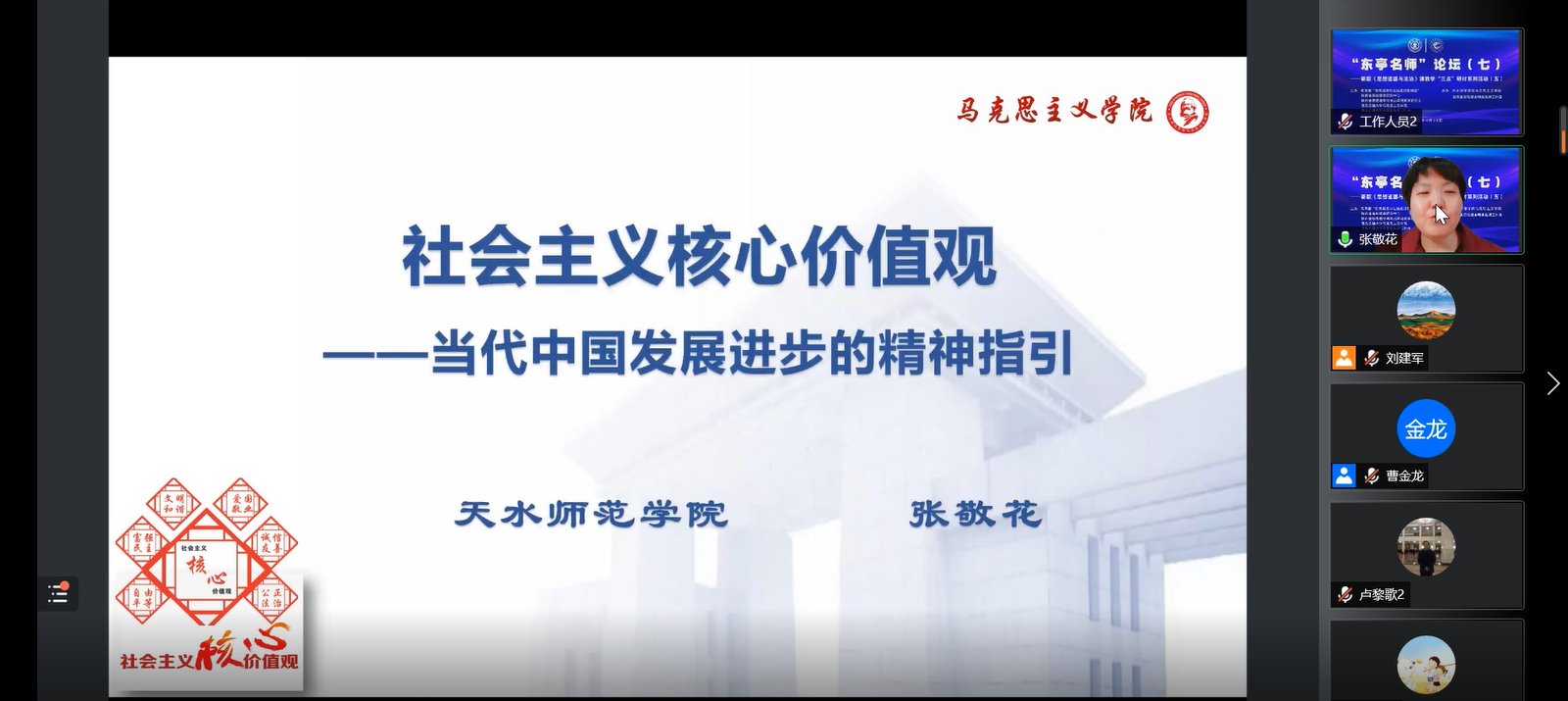 教学展示与专家点评环节由教育部全国首届思政课教学能手、教育部首届思政课教学展示一等奖获得者、西安交通大学新葡萄8883官网AMG官网思想政治教育研究所所长杨华副教授主持,全国高校思想政治理论课教学标兵、第二届全国高校思政课教学展示特等奖获得者、全国高校思政课影响力提名人物、重庆师范大学新葡萄8883官网AMG官网兰桂萍副教授和甘肃省首届高校思政课教学能手大赛二等奖获得者、新葡萄8883官网AMG官网新葡萄8883官网AMG官网张敬花副教授分别以“社会主义核心价值观彰显人民至上的价值立场”“社会主义核心价值观——当代中国发展进步的精神指引”为题进行了精彩展示。