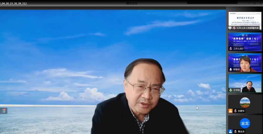 甘肃省社科联副主席、教育部高校思想政治工作创新发展中心(兰州大学)主任、教育部高等学校马克思主义理论类专业教学指导委员会委员、兰州大学王学俭教授综合点评了两位老师的示范与分享,指出两位教师“内容熟悉,重点突出”“紧扣主题,创新拓展”“理论深刻,联系实际”“备课认真,讲解透彻”,赞扬两位教师“精准备课有底气,认真授课讲得透,融会贯通接地气”,并寄语两位教师在思政课教学研究中更上一层楼。