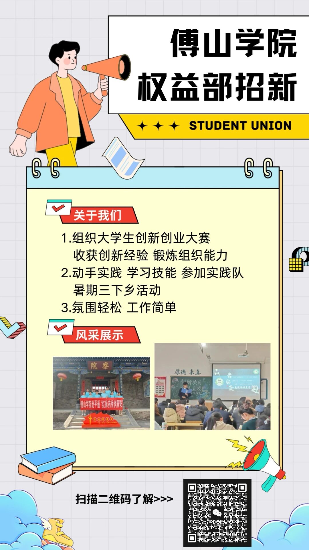 每一份热爱都值得被看见,每一位同学都能找到发光的土壤。pp电子官方网站入口学生会招新通道已为你敞开,别让犹豫错过成长的机会。快来pick心仪的部门,与我们一起,用行动书写属于傅院学子的青春答卷,共同打造更精彩的校园生活!