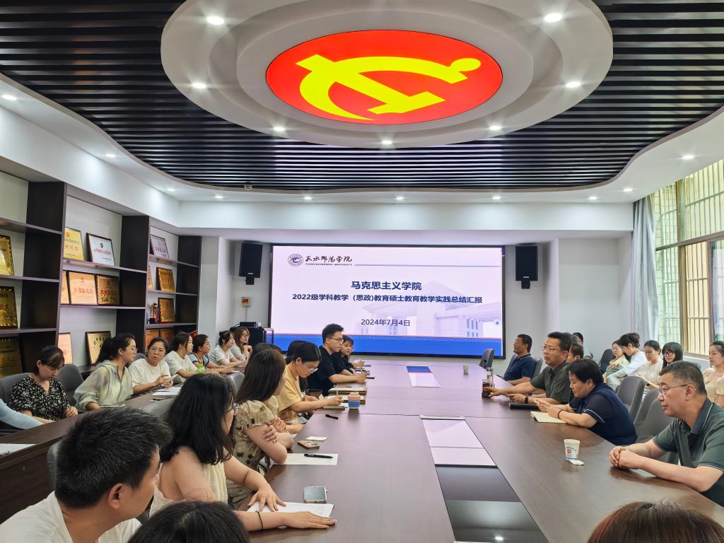 教育教学实践是教育硕士成长中的重要培养环节,是锤炼教育硕士教学技能和提升综合素养的“练兵场”和“试验田”。在天水市第一中学(麦积校区)、天水市第二中学和天水市逸夫实验中学三个实践教学基地参加集中实践教学的23名2022级学科教学(思政)教育硕士近日圆满完成实践教学任务返回学校。7月4日下午,新葡萄8883官网AMG官网举行教育硕士集中实践教学汇报会,研究生导师和2022级学科教学(思政)教育硕士参加,2023级学科教学(思政)教育硕士旁听观摩。汇报会由刘建军院长主持。