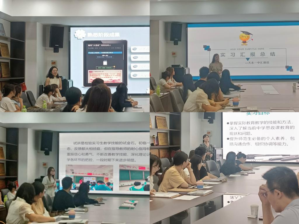最后,刘建军院长指出,研究生们要怀有感恩之心,感谢实习基地学校提供的宝贵实习机会和指导教师的辛勤付出,勉励同学们进一步提升理论素养、锻炼教学技能,不断追求更高的目标;要尽快整理教育调查资料数据,开始学位论文撰写。同时关注就业信息,积极参加面试招聘。