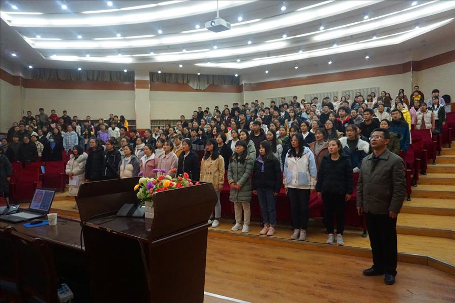 活动第三项:刘建军副院长做“深入宣传宪法,弘扬宪法精神”为主题的专题讲座。首先,刘院长为我们讲述了宪法的重要性,12月4日为国家宪法日的原因以及各国宪法的渊源。刘院长也指出了国家设立宪法日的重大意义,增强宪法意识,弘扬宪法精神的重要性。然后进入大会第二阶段,在场所有人员起立,奏唱国歌。接着,刘院长从宪法与我们的关系、宪法的基本知识、2018年宪法修正案这三个方面的主要内容,具体从法治的六大任务到宪法的历史、概念、特征、新中国宪法的产生和发展到修正案的必要性、宪法修改的意义等进行了阐述,他强调宪法作为国家根本大法需要我们在了解的前提下去遵守,运用。最后,刘院长提出,当代青年应增强宪法意识,弘扬宪法精神。清楚宪法的基本知识,维护宪法,遵守宪法。