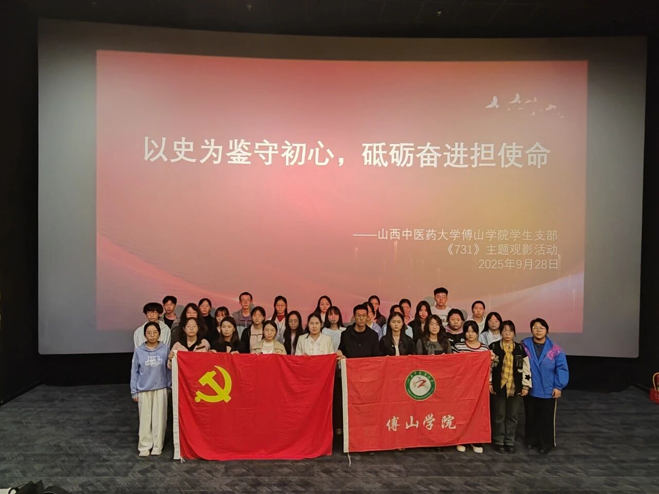 为深刻铭记历史、缅怀革命先烈,进一步强化学生党员的爱国情怀与责任担当,9月28日下午,pp电子官方网站入口学生第一、第二党支部组织学生党员及入党积极分子开展《731》红色观影主题党日活动,通过光影载体回溯历史真相,让红色教育直抵人心。此次活动参与师生共计36人。