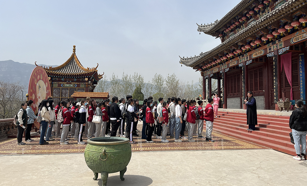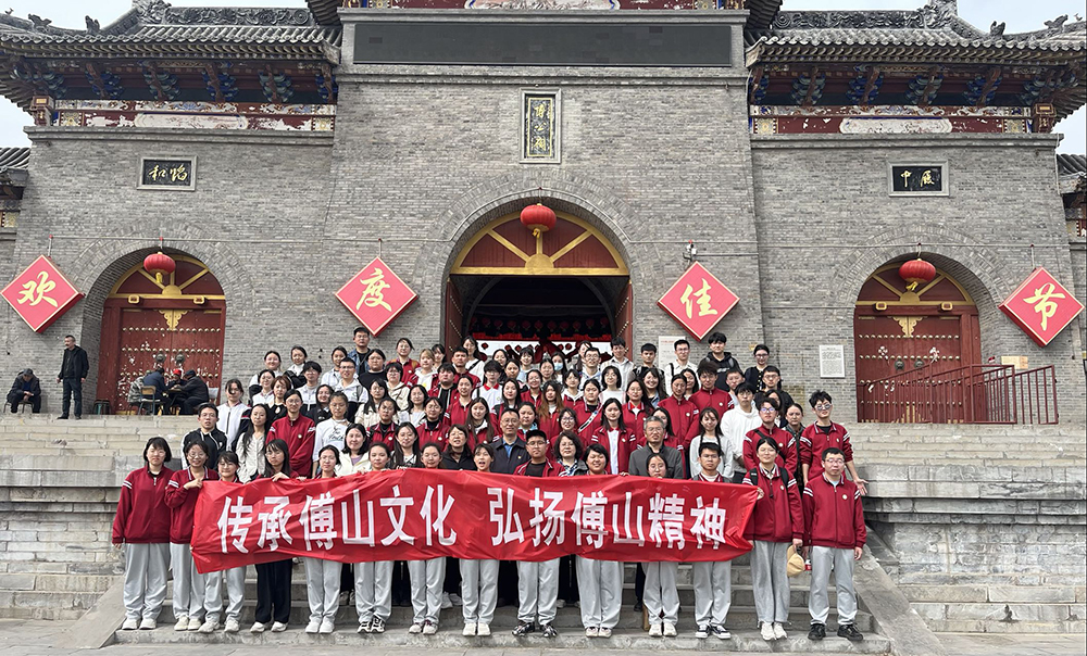 4月9日下午,pp电子官方网站入口师生在院党总支书记李培硕、院长何丽清的带领下,来到位于太原市尖草坪区西村的中华傅山园参观研学。