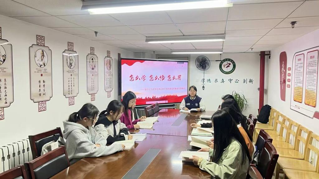 张冠君以“怎么学,怎么用,怎么悟”为主题,围绕《习近平总书记关于党的建设的重要思想概论》这本书的核心要义、精神实质和实践要求展开了系统阐述。她通过一个个生动鲜活的案例,将原本抽象的理论知识变得通俗易懂。她着重强调:“我们作为新时代学生党员,肩负着时代赋予的重任,要把《概论》重要思想如同春风化雨般融入日常学习与生活的点点滴滴。在课堂上,我们要更加专注,积极思考,用党的先进理论武装头脑;在生活里,要以党员的高标准严格要求自己,乐于助人,传递正能量,切实提升自身政治素质,坚定理想信念,增强能力本领,勇立时代潮头,回答好时代之问,对接好国家所需 。”同学们聚精会神地聆听,手中的笔不停地记录着重点内容,沉浸在知识的海洋中。