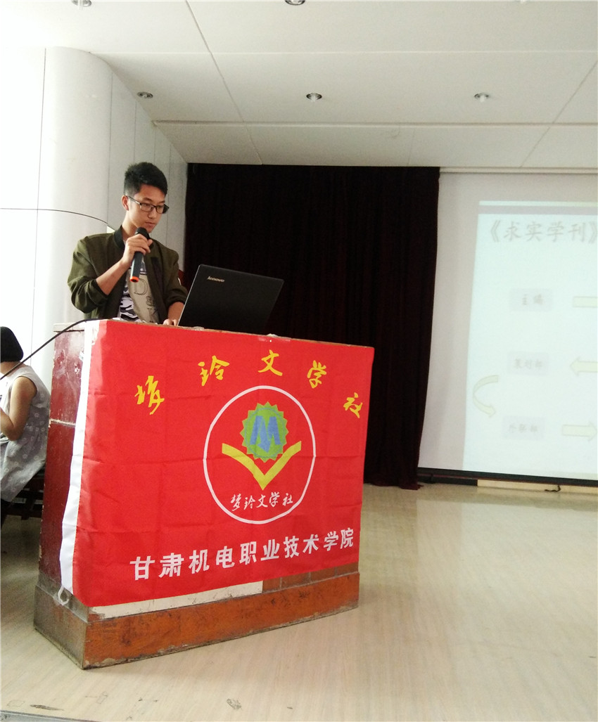 会议开始,首先由甘肃机电职业技术学院的石老师致辞。他以“大学之道,在明明德,在亲民,在止于至善”向与会同学深刻地阐述其思想,使同学们感触颇深。然后由各个学校负责人向大家介绍各自的学刊特点、历史等。我校刘亚新向与会同学以PPT形式精彩的介绍了《求实学刊》编辑部的机构设置、往期精彩活动及对学刊未来发展的美好构想。其次由各学校的同学做演讲和朗诵,主题有“青春梦想”、“其实我们都一样”、“谁的青春不迷茫”、“相信未来”、“那时花开”……,其中我校选手韩小桃的《青春梦想》、何莉飞的《相信未来》荣获二等奖;杨苗的《那时花开》荣获三等奖。活动最后评委就选手表现进行点评并组织所有人员拍照留念,我校代表陈伯亮对本次活动和选手表现做了详细点评,对活动和选手的不足提出意见。