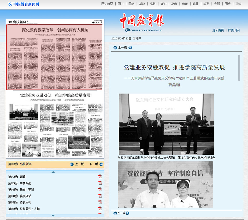 学院党总支紧紧围绕为党育人、为国育才,紧扣立德树人根本任务,全面提升思想政治教育工作水平,引导学生孜孜以求马克思主义真理,努力培养德智体美劳全面发展的社会主义建设者和接班人。引导党员教师自觉将党性锻炼与教书育人融为一体,依托思想政治理论课,积极打造了学生喜爱的品牌课程“云上思政课”。该课程以“五四”“七一”“十一”等重大节点为契机,由学院博士、教授在线授课,实现了思政课从“云上”走入“心底”。由学院教师与甘肃援鄂医疗队的首批逆行者、天水四零七医院的主管护士同上的“绽放战疫青春坚定制度自信”云上思政课和在甘肃省张家川县沈遐熙革命纪念馆举办的“筚路蓝缕成伟业,沐雨栉风建新功”云上思政课,得到“00后”学生的一致好评,并且被《人民日报》、今日头条等各媒体报道;建立了思想政治理论课实践教学与大学生暑期“三下乡”社会实践活动、志愿服务、大学生课外学术科技作品竞赛、社团建设等相结合的有效途径,党员教师和团委书记、辅导员共同参与指导社会实践、志愿服务、课外学术科技作品竞赛和社团活动,开展了国情、党情、省情、地情调研和“进社区、进企业、进农村、进班级”理论普及宣讲活动,引导青年学生将自己的前途和命运融入到中国特色社会主义建设和中华民族伟大复兴的事业中。