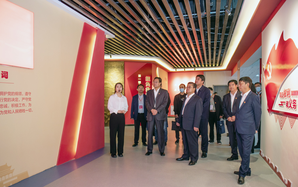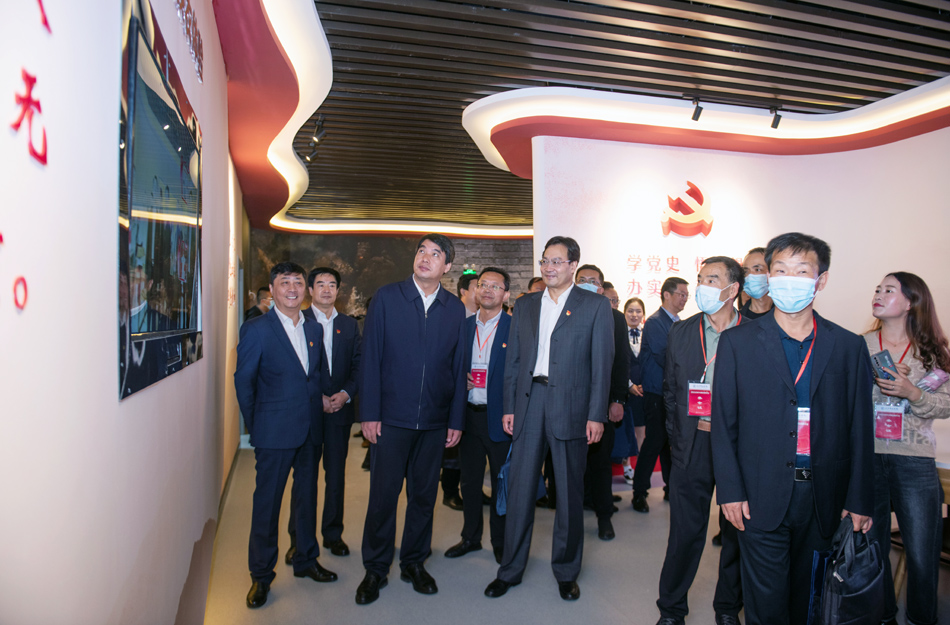 与会领导和专家参观了红色文化教育体验馆。体验馆以中国共产党百年光辉历程为主线,通过重点展示“四史”、红色甘肃、习近平总书记在甘肃、共产党人精神谱系、全国优秀共产党员和共和国功勋榜样事迹、党员警示教育等主题,运用VR虚拟互动体验、360度环幕沉浸式体验、智慧墙等现代科技手段,再现中华民族从站起来、富起来到强起来的伟大征程,展现甘肃人民艰苦奋斗的革命史和建设史。是集讲解、观摩、体验为一体,融合党史教育、思政教学、红色文化传承等综合功能的基地,为学习党史、新中国史、改革开放史、社会主义发展史和甘肃红色文化提供了鲜活的教材。