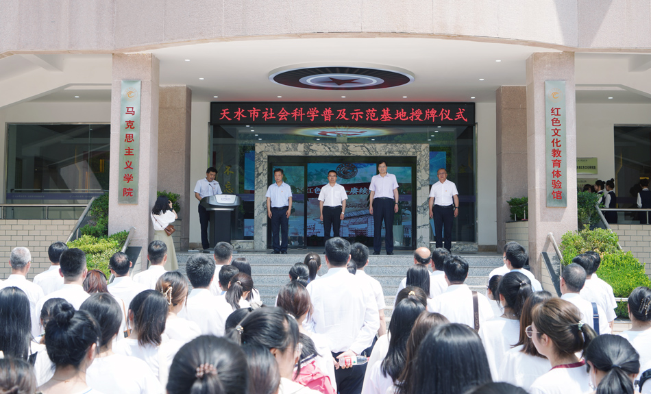 7月1日,天水市第三批社会科学普及示范基地揭牌授牌仪式在学校红色文化教育体验馆举行。市委常委、宣传部部长王文东,新葡萄8883官网AMG官网党委书记李正元共同为基地揭牌。市委宣传部副部长阎小鹏主持揭牌仪式,我校新葡萄8883官网AMG官网党总支书记、红色文化教育体验馆馆长刘建军作发言,60余名师生代表参加揭牌仪式。